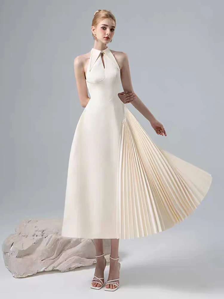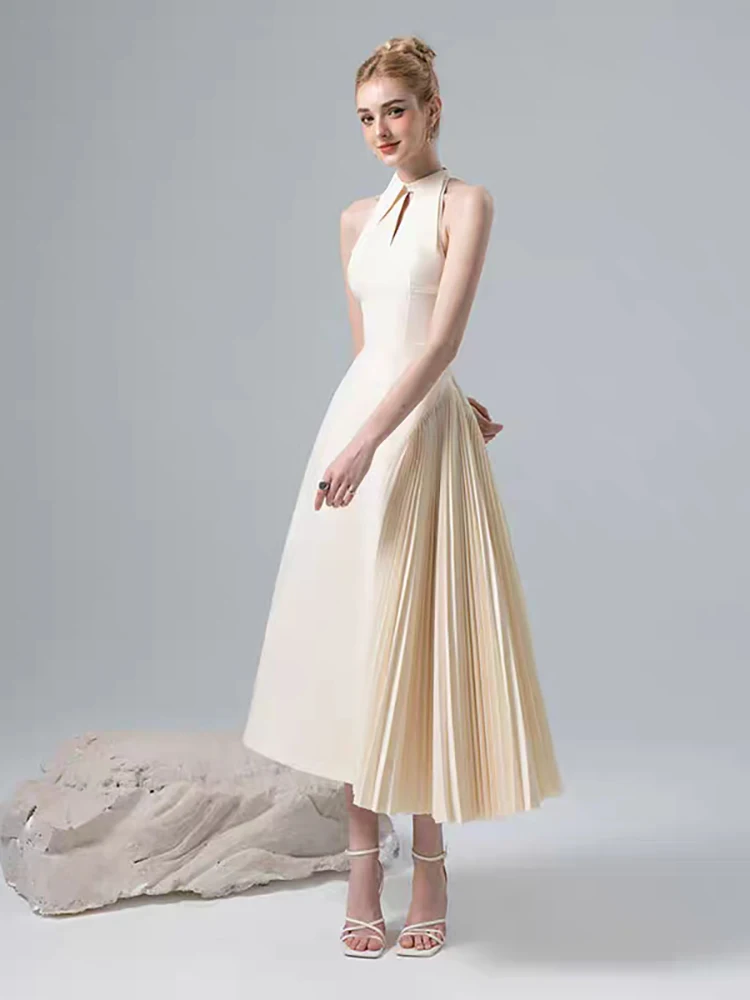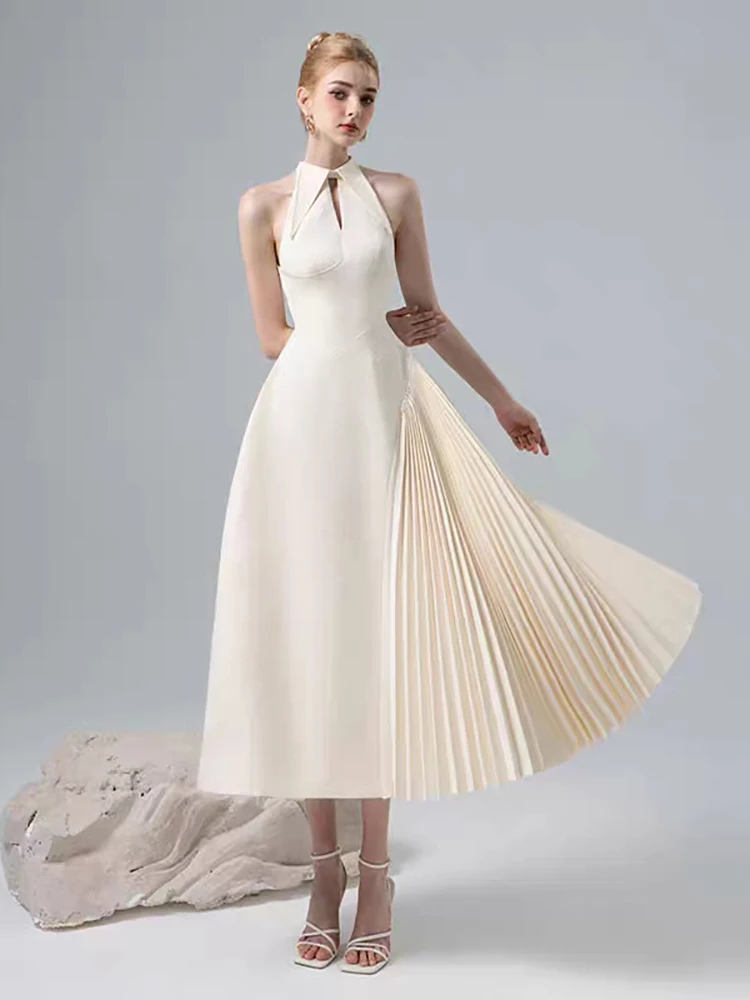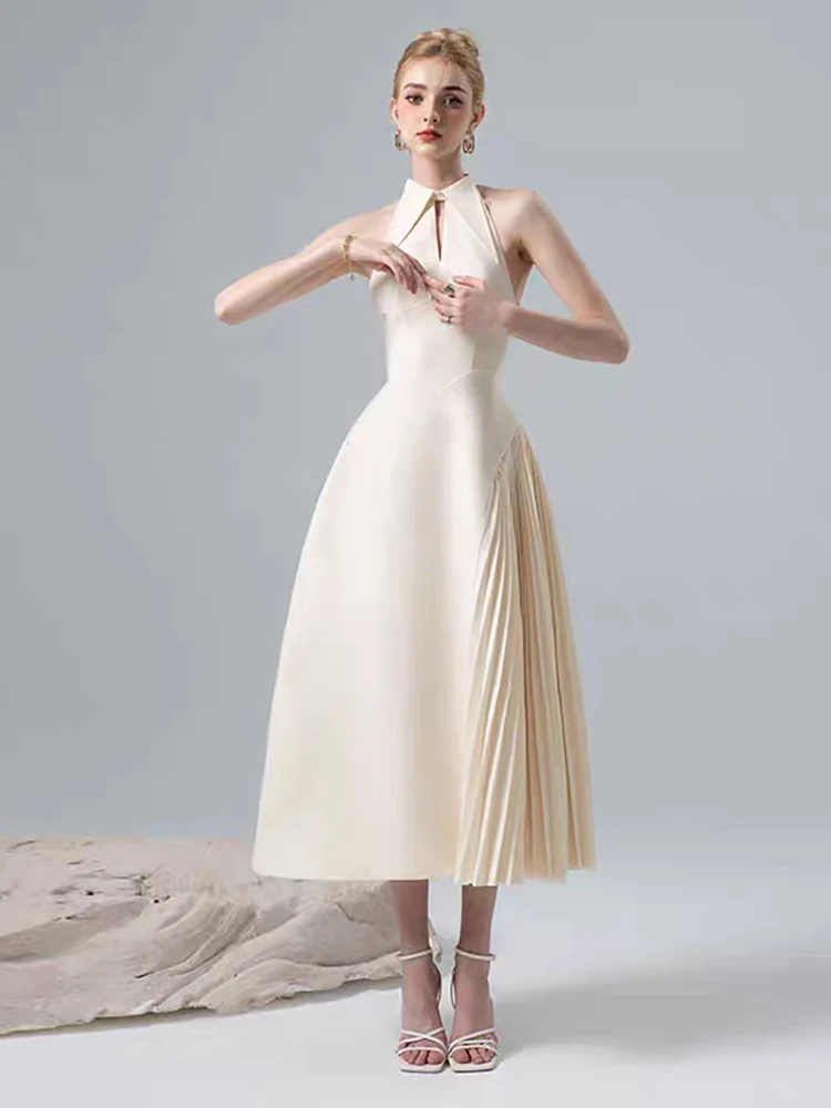 The patchwork pleats and asymmetric hem add a touch of avant-garde fashion, making it a standout piece in any wardrobe. The pleated waist enhances your natural silhouette, ensuring a flattering fit for various body types. Made from high-quality polyester and chiffon, this dress offers a slight stretch for added comfort and ease of movement.